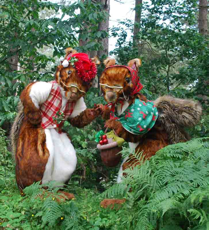 Attention all you bird lovers! These ducks are the friendliest of fowl and keen to investigate every situation with their curious waddling charm! Perfect for outdoor events and Beatrix Potter themed events. Great entertainment if your event is in a park, or near water and yes, even on the Highj Street. Pecking and quacking through a kazoo like device making convincing ducky noises to delight young families. If it's squirrel s you prefer, then this act have these gorgeous squirrel costumes available too.