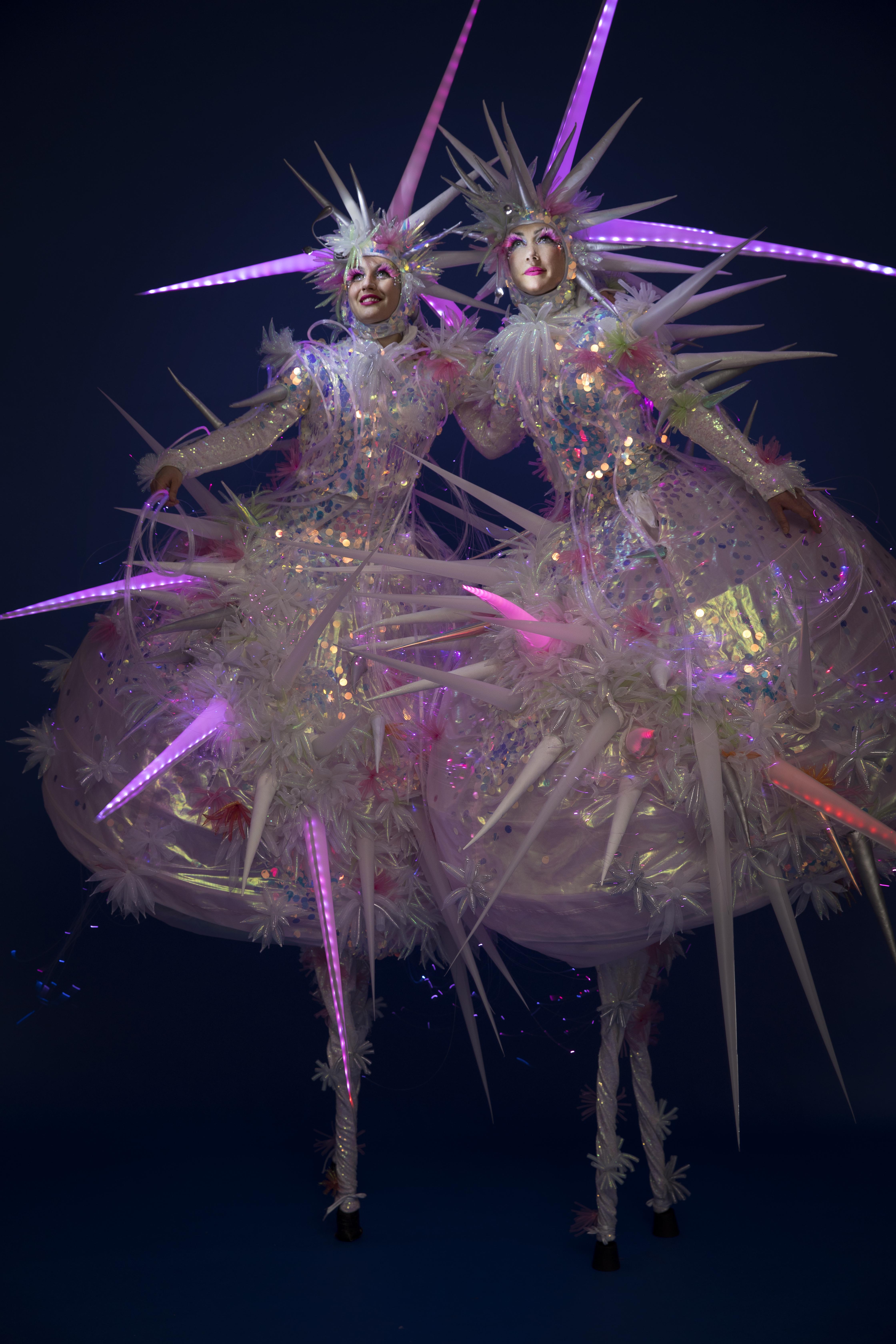 A truly bedazzling and enchanting walk-about brand new for 2018. Interacting with elegance, this twinkling LED attraction will stilt walk around your centre and amaze the crowds. Ideal for day or evening with fibre optics that come in a wide range of colours and can therefore be tailored to your request! Hire LED stilt walkers for your Christmas event who will never ever disappoint!